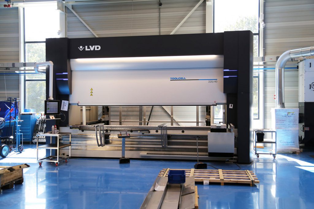 We hebben gekozen voor een volledig geautomatiseerd systeem van LVD. De Toolcell 220Ton kan tot 4 mtr. lang kanten/zetten. De 2 robot armen plaatsen zelf de gesegmenteerde onder matrijzen en de boven messen in de machine. Hiermee zijn de neventijden bijna geheel komen te vervallen. Daardoor is de machine naast het serie werk ook uitermate geschikt voor kleine aantallen.